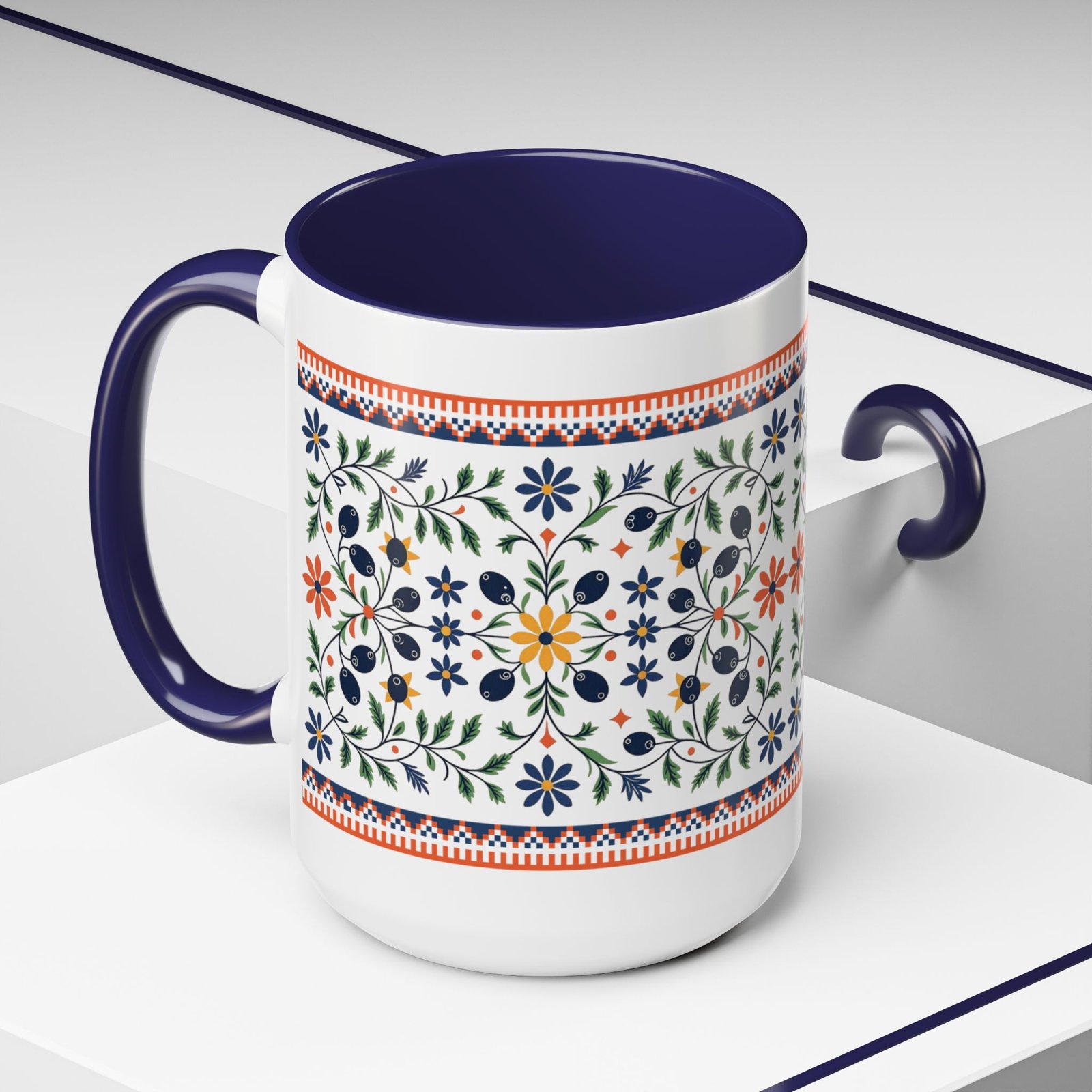 This coffee mug features a palestine poppy flower and olive branch design, perfect for adding a touch of cultural inspiration to your morning routine. The tatreez mug is microwave and dishwasher safe, with vibrant colors and a glossy finish that will make your favorite hot beverage stand out. Ideal for those who appreciate Palestinian heritage or enjoy a unique coffee drinking experience. Great for gifting on holidays or special occasions.
